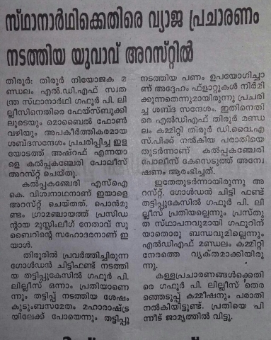 പത്ര വാർത്തയിലൂടെ..10/May/2016