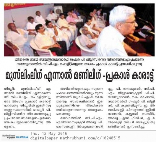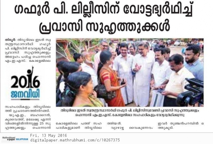 പത്ര വാർത്തയിലൂടെ.. 11/May/2016