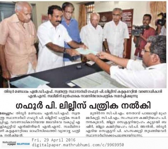 തിരൂരിൽ വി എസ്, ഗഫൂർ പി ലില്ലീസ് തരംഗം..!! ഇന്നത്തെ പത്ര വാർത്തകളിലൂടെ..