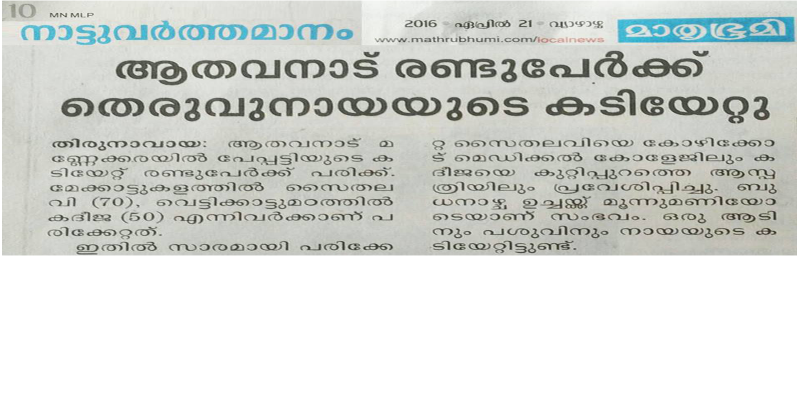 തിരൂർ നിയോജകമണ്ഡലത്തിലെ ആതവനാട് പഞ്ചായത്തിലെ പേപ്പട്ടി ശല്യം പരിഹരിക്കാൻ അധികൃതർ ഉടൻ നടപടി സ്വീകരിക്കേണ്ടതാണ്. ഇന്നലെ മണ്ണേക്കരയിൽ പേപ്പട്ടിയുടെ കടിയേറ്റ് രണ്ട് പേർ ആശുപത്രിയിലാണ്. ഇവർക്ക് ആവശ്യമായ ചികിത്സ ലഭ്യമാക്കണം. ഈ ഭാഗങ്ങളിൽ പശുക്കൾക്കും ആടുകൾക്കും പേപ്പട്ടിയുടെ കടിയേറ്റിട്ടുണ്ട്. ഏറെ ഗുരുതരമായ അവസ്ഥ നേരിടാൻ അധികൃതർ അടിയന്തരമായി ഇടപെടേണ്ടതാണ്